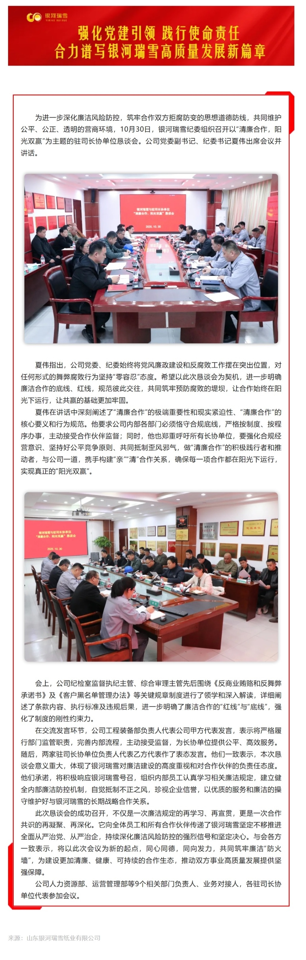 银河瑞雪与驻司长协单位共话“清廉合作 阳光双赢”