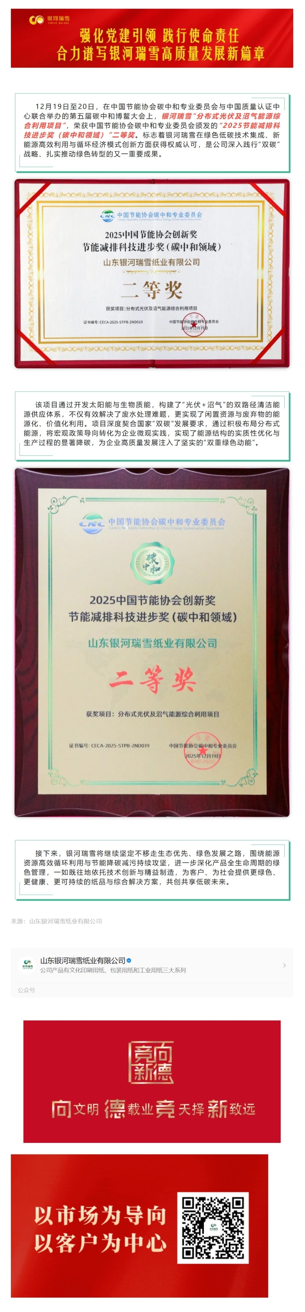 银河瑞雪荣获碳中和领域重要奖项