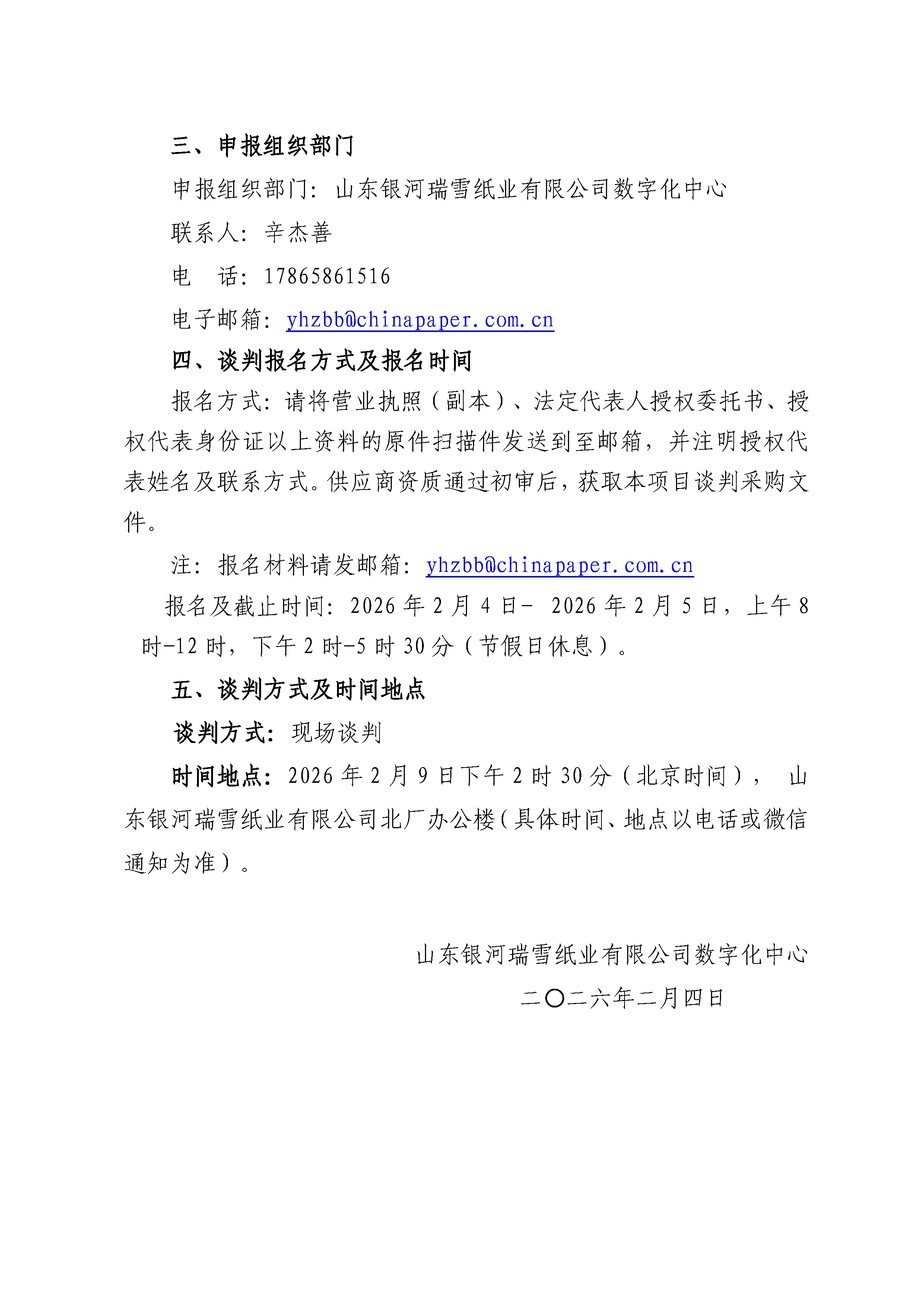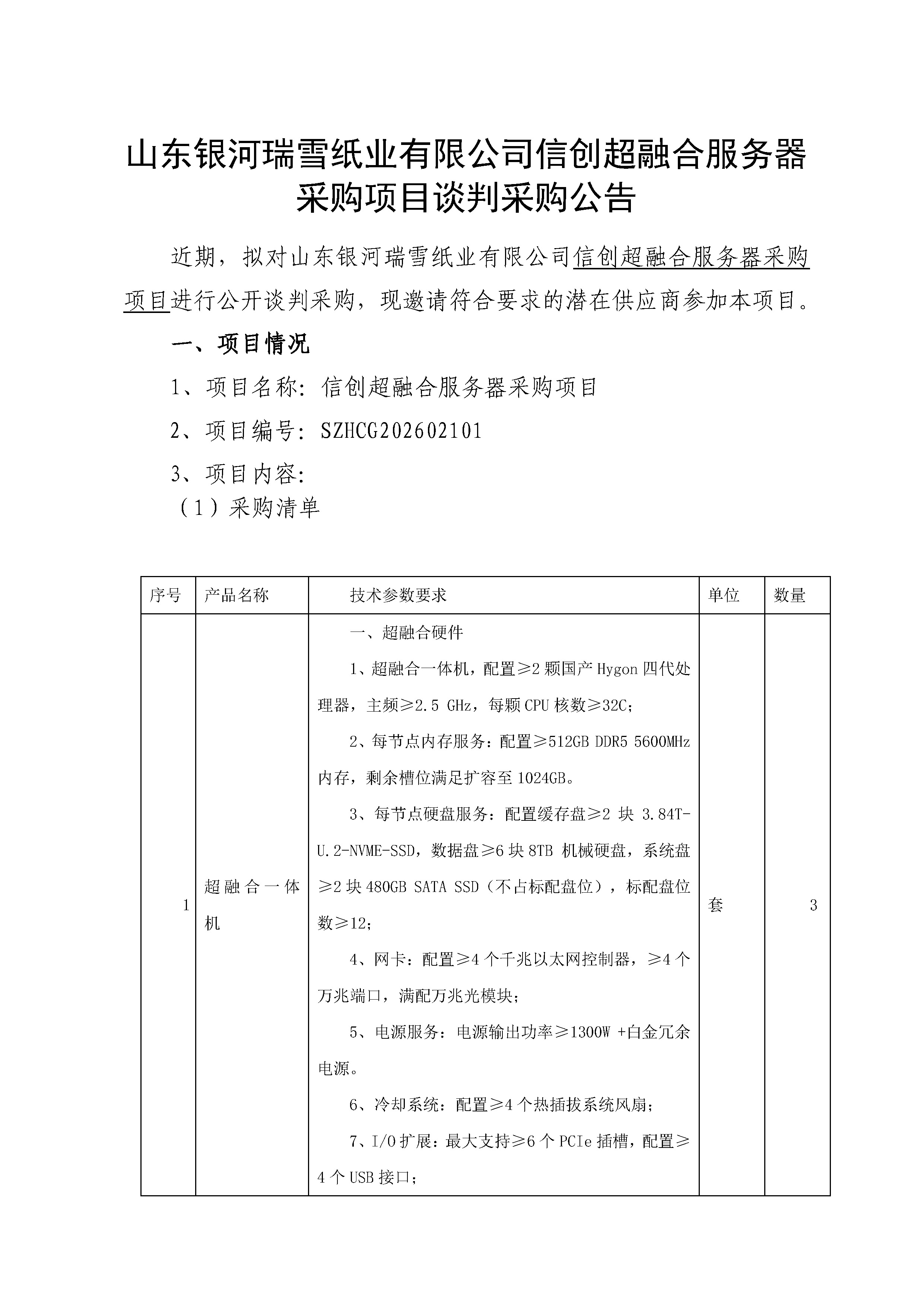 【公告】山东银河瑞雪纸业有限公司信创超融合服务器采购项目谈判采购公告