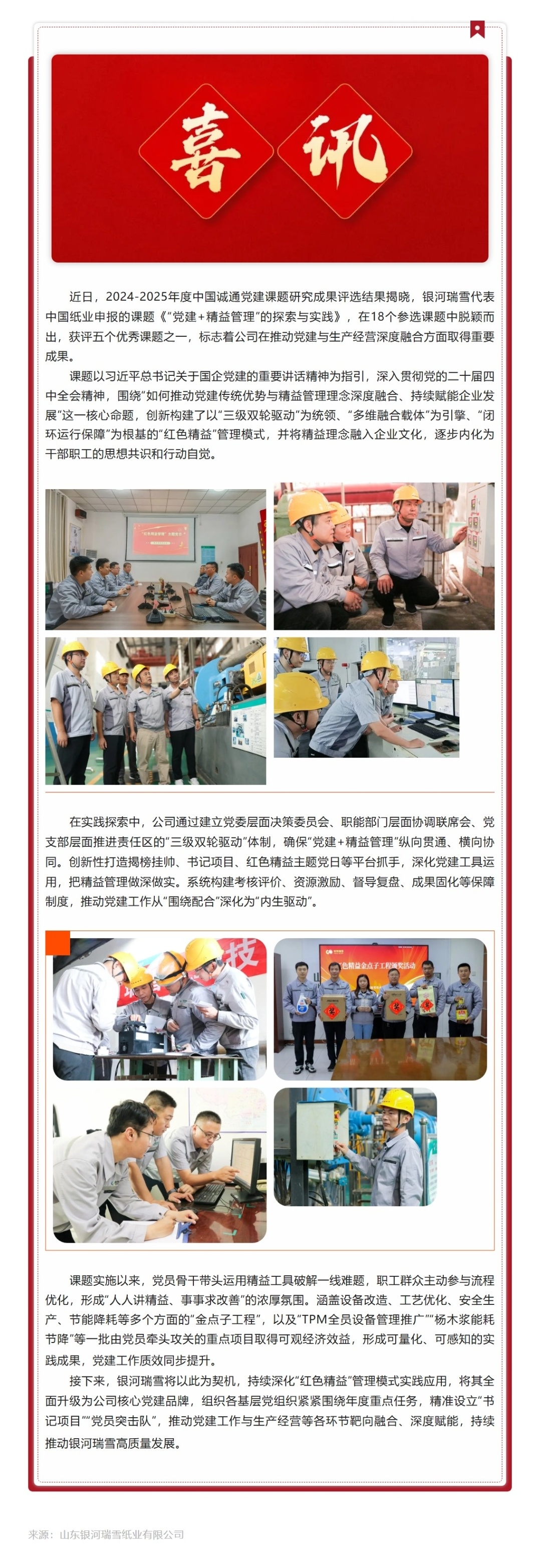 银河瑞雪《“党建+精益管理”的探索与实践》获中国诚通党建课题研究优秀论文奖