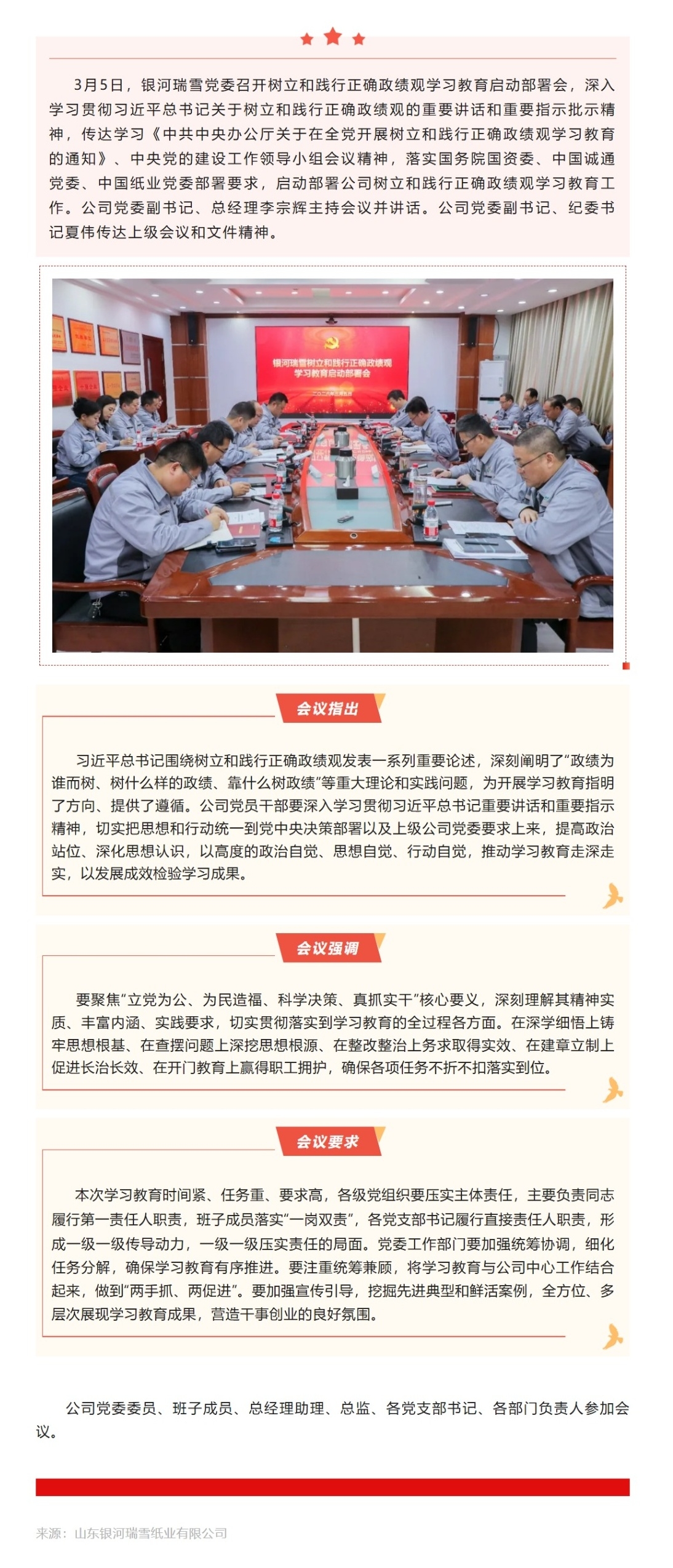 学习教育丨银河瑞雪党委部署开展树立和践行正确政绩观学习教育工作